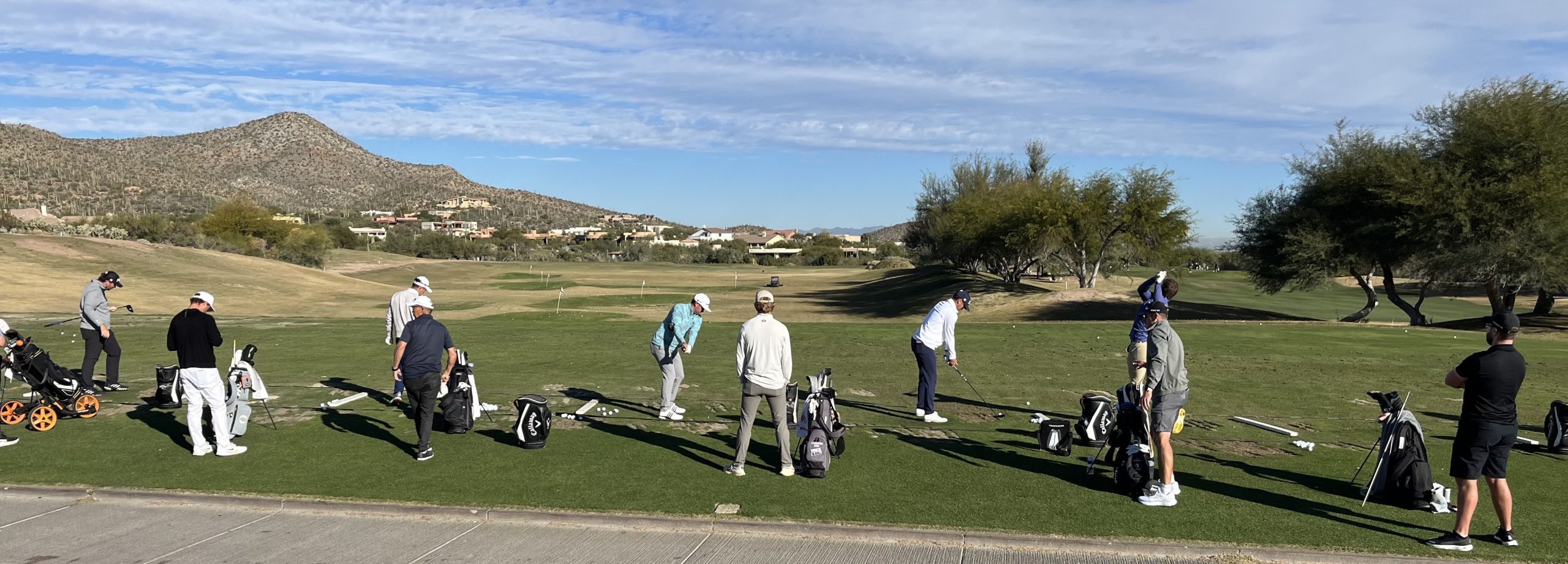 On the second tee at Starr Pass in Tucson, Arizona, Sean O’Hair and Kyle Stanley stood together, engaged in quiet conversation. The backdrop was reminiscent of a classic John Ford film, featuring a striking landscape of saguaros, rugged mountains, and a pale blue sky.